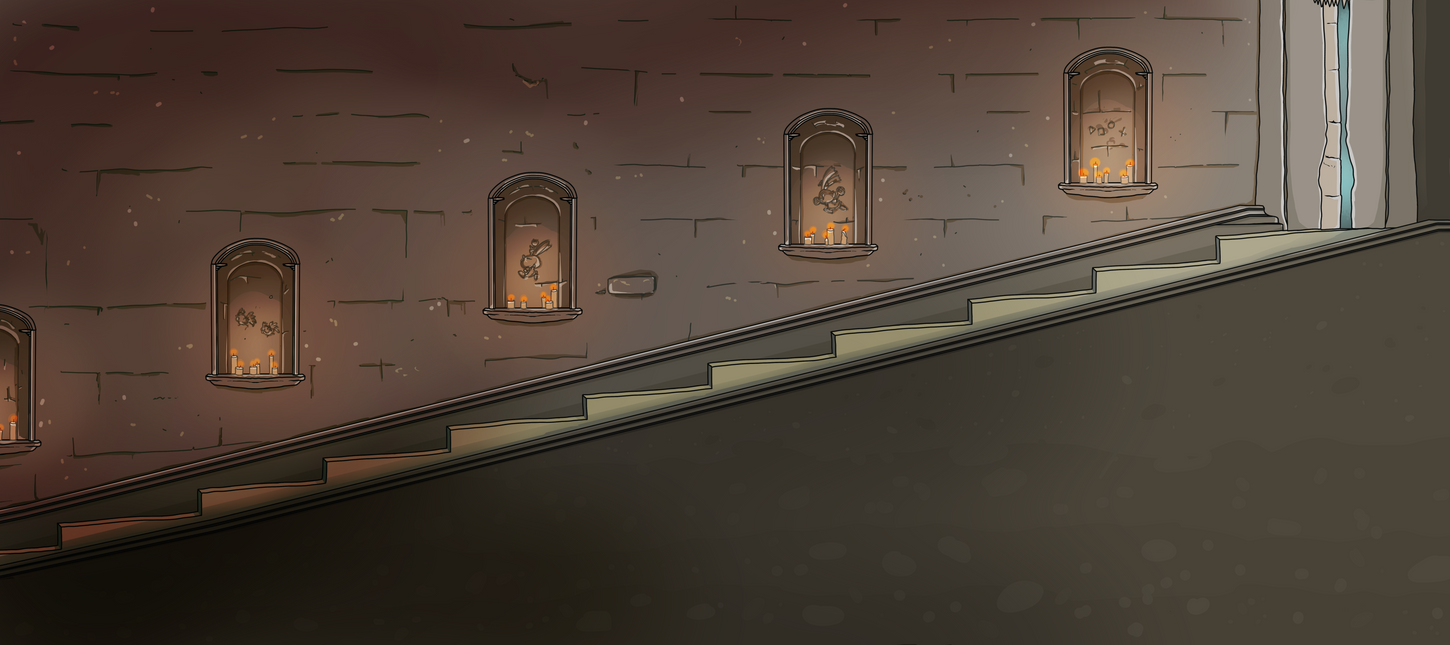 This collection features background art for various scenes. All backgrounds were broken down to allow for parallax in composting. Backgrounds for the rotoscope scenes where created using the "Demon Souls" video game environments that were screenshot and stitched together as panoramas edited in Adobe Photoshop.